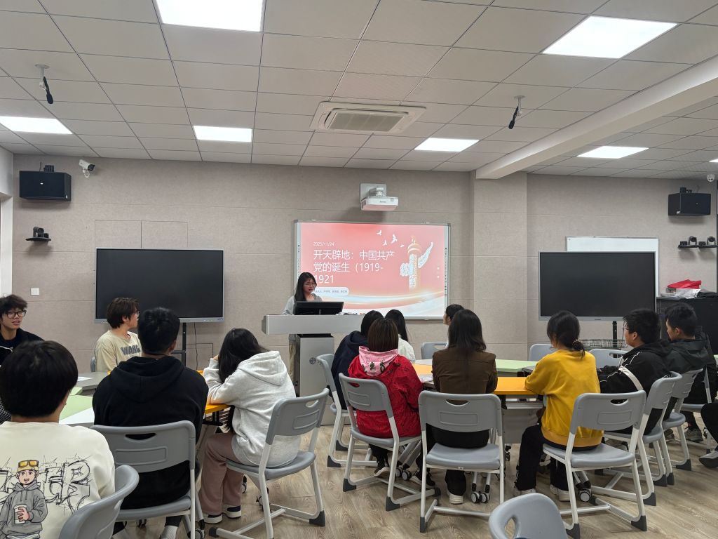 为深入学习贯彻习近平新时代中国特色社会主义思想,持续推进党史学习教育常态化长效化,2025年11月24日,交通工程系学生第一党支部正式启动“学”党史,“讲”初心,“接”力量——党团对话系列活动。系列活动第一次活动以“开天辟地:中国共产党的诞生”为主题,由支部书记王祈帆老师主持,入党积极分子吴佳敏主讲,学生团员积极参与交流,共同回顾党的光辉历程,传承红色基因。
