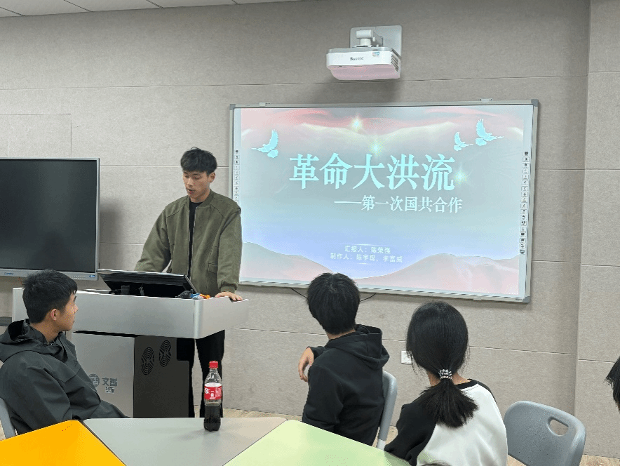 发展对象陈荣强讲到:“第一次国共合作是中国革命史上的重大事件,它推动了反帝反封建斗争的深入发展,为中国革命积累了宝贵经验。虽然合作最终以失败告终,但它扩大了革命影响,锻炼了人民群众,为后续革命斗争留下了火种。”