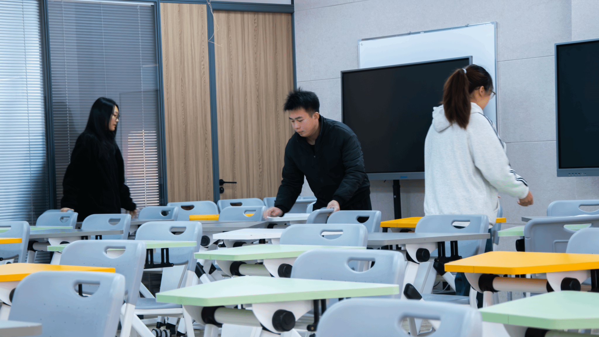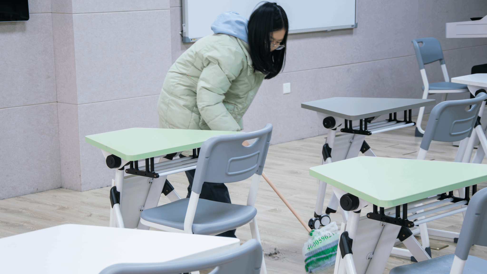 活动现场,大家分工明确,配合默契,对考场桌椅进行了标准化排列,并对教室卫生进行清理。整个劳动过程井然有序,成员们动作麻利,追求效率。经过一上午的劳动,交通楼各考场桌椅整齐划一,为即将到来的期末考试提供了良好的硬件保障。大家以高度的责任感和饱满的热情投入劳动,用实际行动展现了学生党员和入党积极分子的服务意识与担当精神。