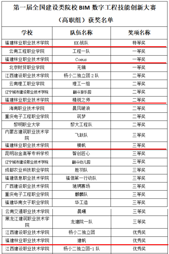 我院在本次全国建设类院校BIM数字工程技能创新大赛取得的成绩,说明了在BIM数字工程技能培养上我院选择的路径是正确的,学生的BIM建模水平已经位列全国高职院校的前列,这对我院争创“双高”院校、注重专业内涵建设、创建品牌专业具有重要意义。