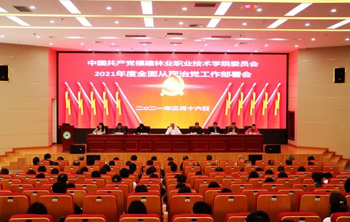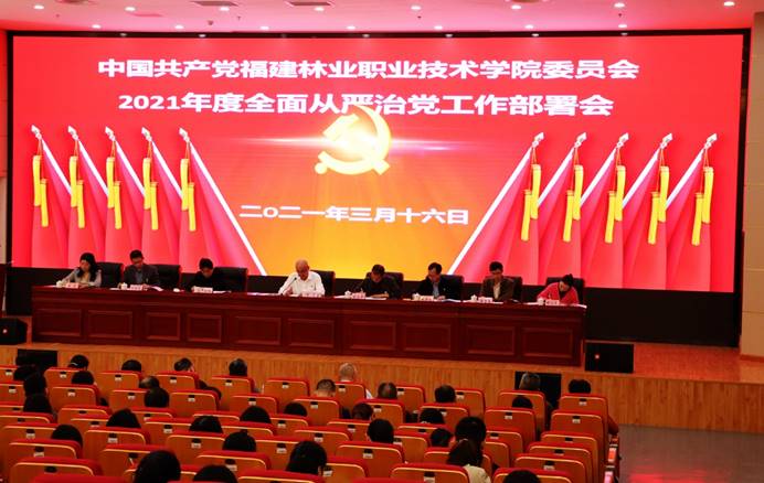 3月16日下午,福建林业职业技术学院2021年度全面从严治党工作部署会在江南校区图书馆报告厅举行,认真总结2020年学院全面从严治党工作,研究部署2021年工作任务,坚定不移纵深推进全面从严治党,引领保障学院事业高质量发展。