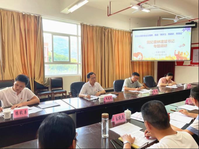 为深入开展“再学习、再调研、再落实”活动,整体把握学院政治生态状况,丰富监督手段、提升监督效能,进一步营造风清气正的政治生态环境,6月16日,院纪委书记林建斌带领纪委办公室主任张毅、综合科科长彭韬以及陈毅勇老师一行先后到后勤管理处、艺术传媒系、交通工程系开展政治生态专项调研活动。