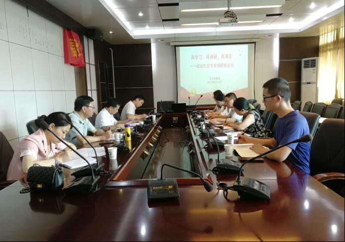 本次调研带着问题座谈,带着调研大纲查资料,带着问卷调查摸情况,全方位、多方面了解学院政治生态建设情况。