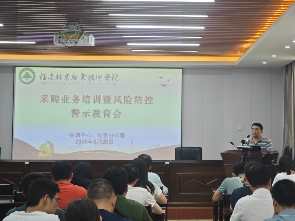 5月20日,学院实训中心和纪委办公室在学院六楼会议室联合举办采购业务培训暨风险防控警示教育会,学院各系(部)采购负责人、采购业务骨干及学院全体专兼职纪检委员等共计60余人参训。