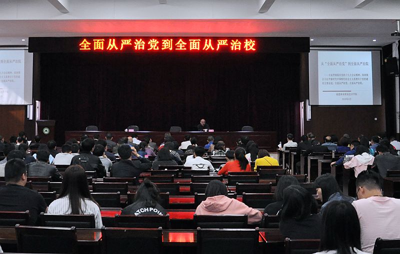4月17日,为深入学习贯彻习近平新时代中国特色社会主义思想,党的十九大、十九届中央纪委二次全会和省纪委十二届三次全会精神,认真落实全国全省教育系统关于加强全面从严治党工作的部署,扎实推进学院全面从严治党向纵深发展,努力把管党治党责任落到实处、见到实效,学院党委在江南校区礼堂召开了2018年全面从严治党工作会议。院领导班子成员,全体党员和副科级以上干部参加了会议。会议由党委副书记、院长万泉主持。