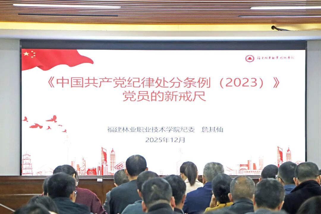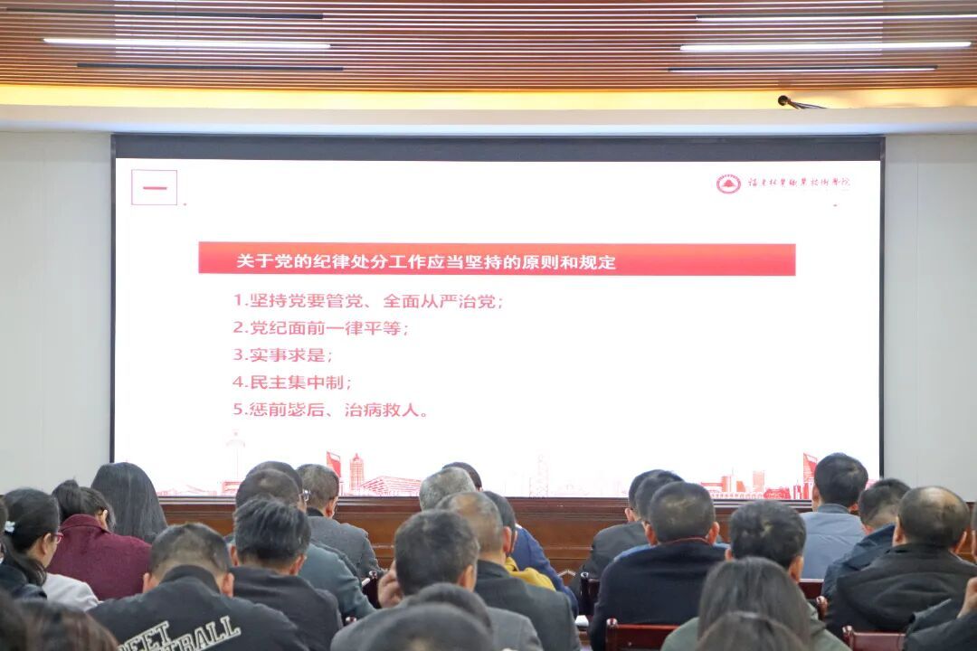 12月9日下午,学院党委委员、纪委书记詹其仙为学院全体干部作“《中国共产党纪律处分条例(2023)》——党员的新戒尺”专题讲座。讲座由院党委委员、组织部(统战部)部长李霞主持。