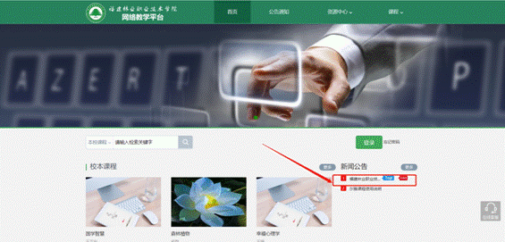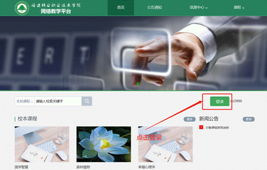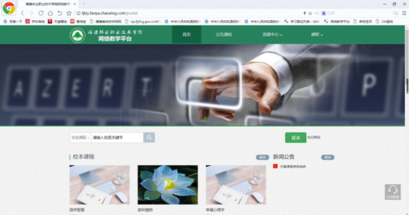 打开电脑浏览器,输入“fjlzy.fanya.chaoxing.com”即可浏览福建林业职业技术学院的网络教学平台,网络教学平台页面如下图所示。