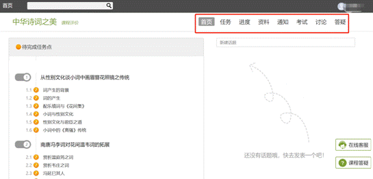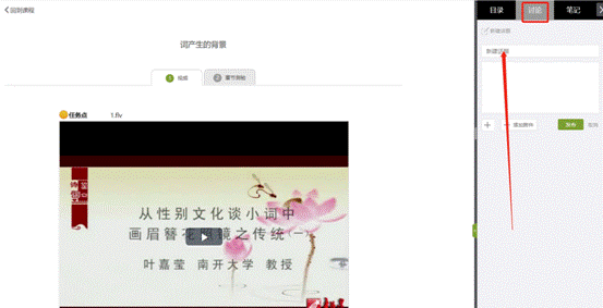 在学习页面的右侧可以发起讨论,查看、回复该课程本班内所有老师、同学的讨论。填写讨论的标题、内容,点击发布。即完成发起讨论的操作。