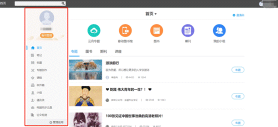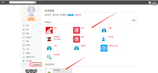 左侧为个人信息和空间应用,学生可自由设置个人信息、管理应用。