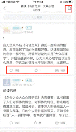 点击“章节”左边的“任务”,可以发布讨论,点击讨论,进入后,可以看到其他同学的讨论,可以点赞,评论,转发,点击右上角的编辑按钮,可以自己发布评论。期末的考试也是在“任务”这里。