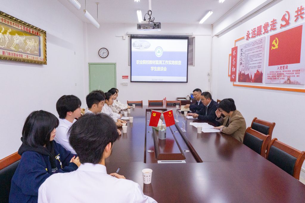 11月4日,福建省职业技术教育中心教材监测专家组莅临学校,开展职业院校教材监测工作实地核查,南平市教育科学研究院职成教研室副主任陈剑陪同检查,学院院长刘文开,副院长黄晖、各二级教学单位负责人参加汇报会。