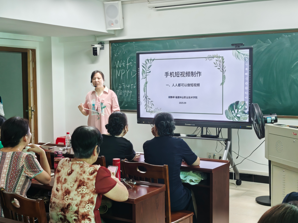 在数字化快速发展的今天,老年群体如何跟上时代步伐,享受数字生活带来的便利?2025 年秋季,福建林业职业技术学院与南平市老年大学开启新一阶段的技术服务合作,聚焦当下热门的手机短视频制作领域,以《手机短视频制作(剪映)》为核心课程,通过16期系统化培训,累计服务老年学员800人次,以数字技术赋能老年教育,助力银发群体跨越“数字鸿沟”。