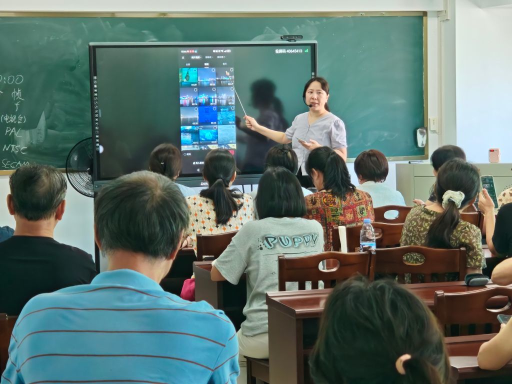 针对老年学员数字基础差异化的特点,课程团队创新设计"阶梯式"教学体系。首阶段以"手机短视频概述与器材准备"破题,通过实物展示、对比演示等方式,帮助学员快速掌握智能手机拍摄功能;第二阶段聚焦剪映软件操作,采用"功能模块分解法",将视频剪辑拆解为文字添加、贴图设计、音频处理等12个独立单元,配合"手把手"实操指导,确保每位学员都能跟上教学节奏;终章则通过"景别认知""取景构图""运镜技巧"等进阶内容,引导学员从"能剪辑"向"会创作"跃升。 为激发学习热情,课程特别设置"作品互评会"等互动环节,学员们围绕特色主题自由创作,在群里分享作品。