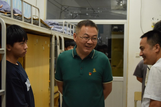 本网讯/为进一步了解新生的入校状况,加强师生交流,切实解决学生所遇到的实际问题,9月8日晚7点,我院学工部部长蔡敏、建筑工程系党总支书记魏长专、系主任彭忠伟、系副主任张李平、专职组织员叶新颖、系教务科科长廖坤阳、系学生科科长兼团总支书记刘克芹及新生辅导员共同前往新生宿舍看望新同学。