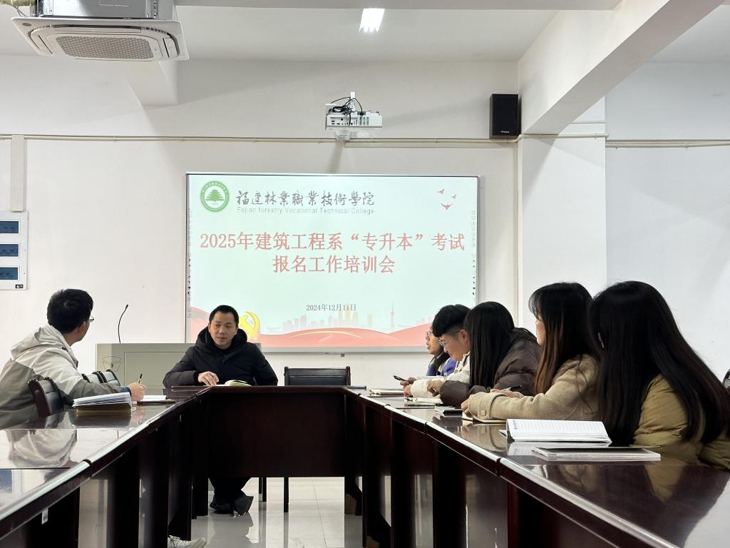 本网讯/12月11日,建筑工程系在建工楼5楼会议室召开了2025年“专升本”报名工作培训会。会议由系党总支书记魏长专主持,全系毕业班专兼职辅导员参加。