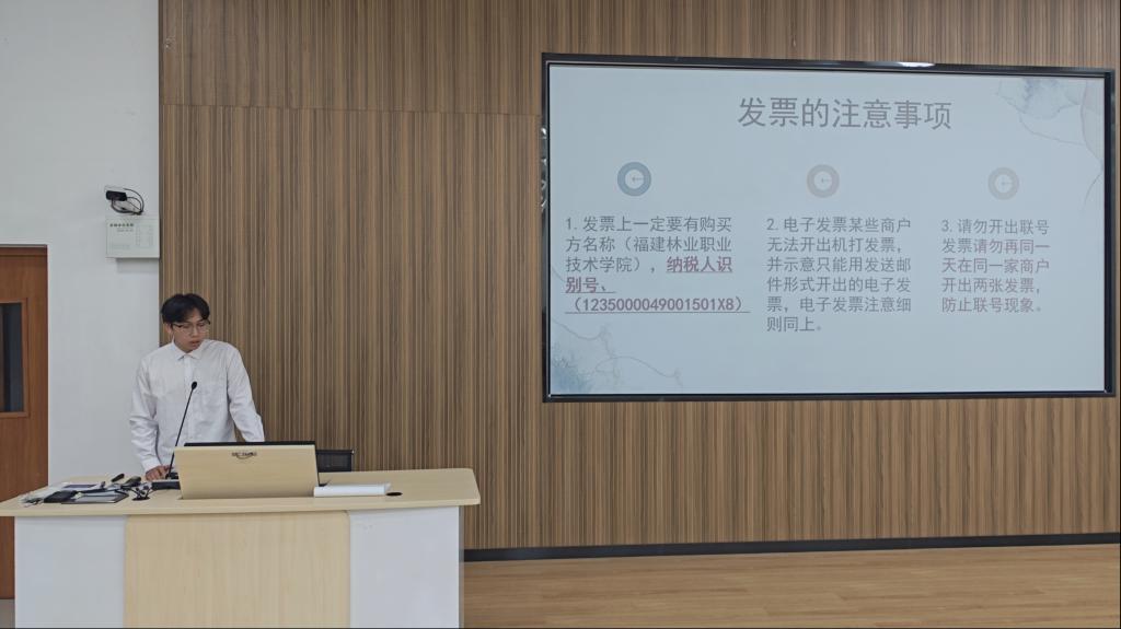 随后,办公室主任朱宇航聚焦“报销规范与注意事项”,从报销凭证的收集整理、发票合规性审核,到报销流程的具体操作步骤,进行了细致入微的讲解。同时,针对常见的报销问题与误区,如发票抬头错误、报销项目与预算不符等情况,通过典型案例进行警示教育,帮助学员们规避财务风险。