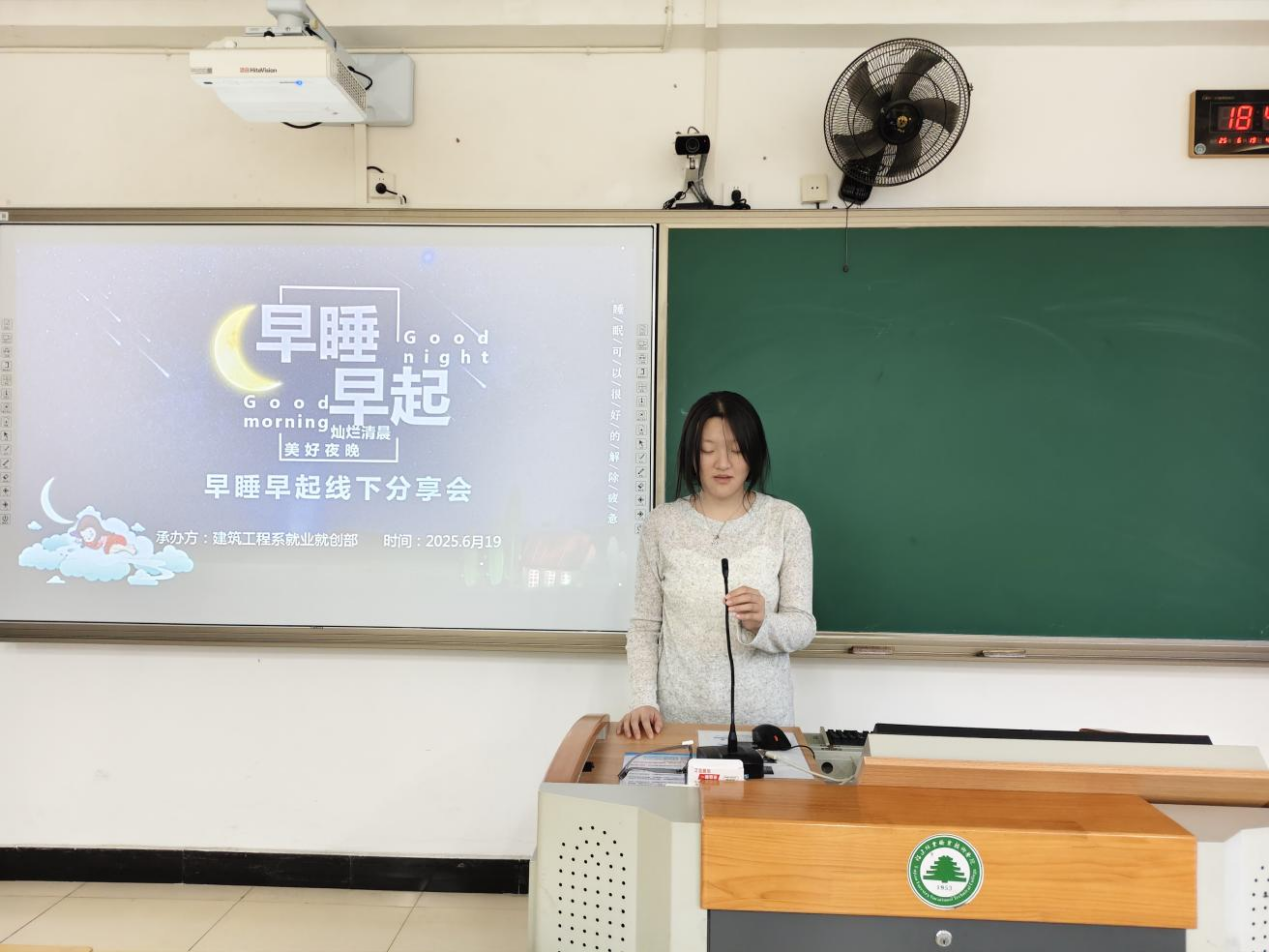 6月19日,建筑工程系举办了“早睡早起”打卡活动线下分享会,在暖意融融的分享角落,同学们围坐成圈,话语如涓涓细流般自然流淌。那些与被窝缠绵的艰难拉锯,那些被晨曦唤醒后通体舒畅的奇妙感受,此刻都化作一个个带着温度的故事,在空气中轻轻碰撞。有同学娓娓道来,讲述晨光中专注阅读如何让知识的溪流悄然汇成心湖,带来前所未有的宁静与洞见;有同学兴奋地分享,坚持晨跑如何像一把钥匙,不仅打开了身体的活力之源,更让久违的精气神重新焕发光彩。每一个坦诚的分享,每一次会心的点头,都让彼此深刻感受到,正是这一点一滴看似微小的坚持,汇聚成了推动每个人前进的、温暖而有力的集体洪流。