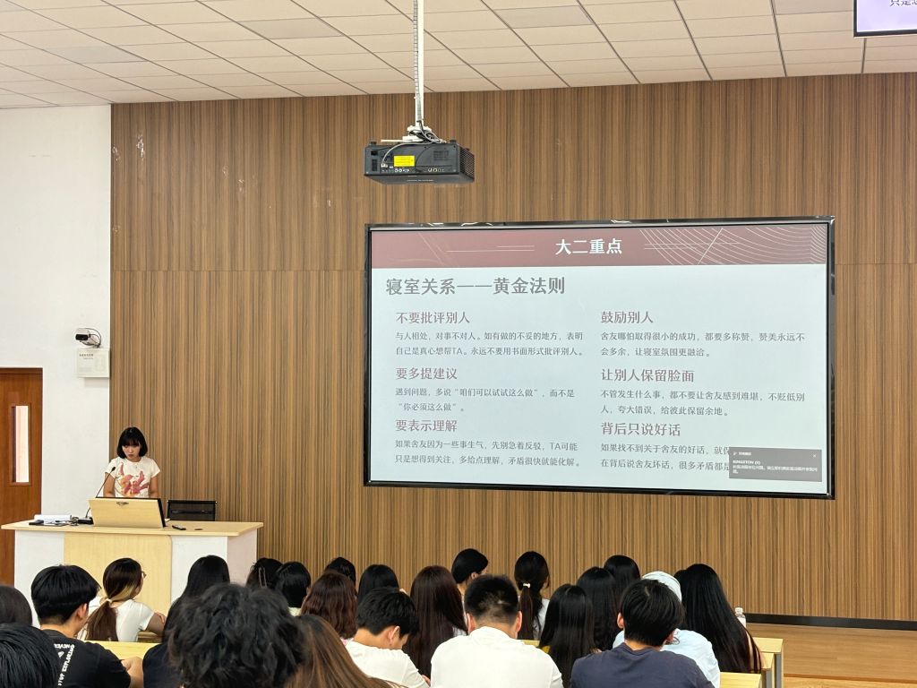 针对开学后可能出现的适应困难、学业焦虑等问题,辅导员分享情绪调节技巧,介绍学校心理健康教育中心预约方式及援助热线,鼓励学生主动沟通求助。同时,通过初步摸排,对有适应压力的新生建立关怀台账,为学生心理健康保驾护航。