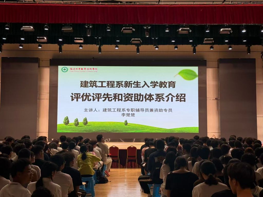 本网讯/为深入贯彻立德树人根本任务,精准落地国家与学校资助政策,将党和国家对家庭经济困难学生的关怀切实传递到位,助力新生快速融入大学生活,9月17日,建筑工程系在江南体育馆举办2025级新生入学教育之资助专题讲座,建筑工程系专职辅导员兼资助专员李楚楚老师担任主讲人。