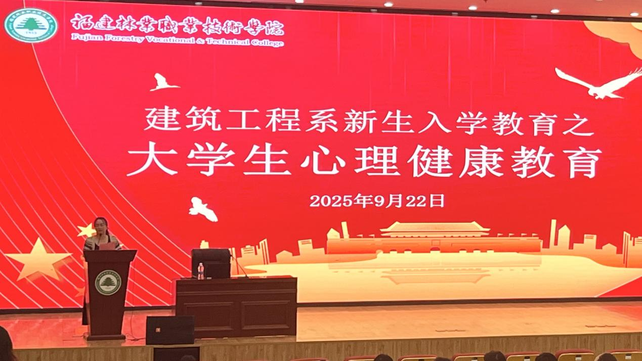 本网讯/为帮助新生树立科学的心理健康观念,深刻认识其重要性,加强自我认知并增强心理素质,建筑工程系于9月22日在江南校区学术报告厅开展大学生心理健康教育讲座。讲座由福建林业职业技术学院心理咨询中心连双玲老师主讲,新生辅导员李楚楚老师主持。
