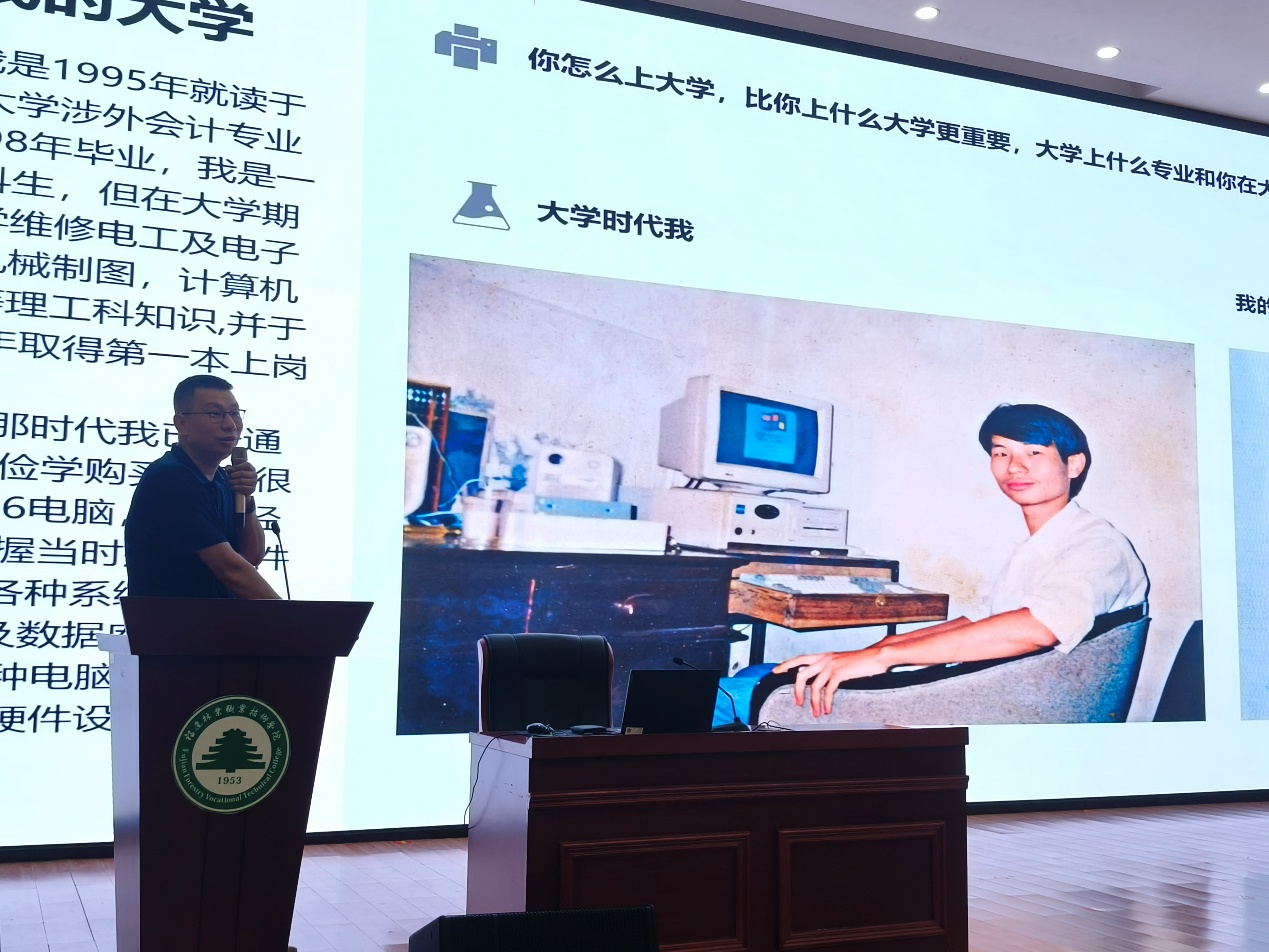 随后,陈进添经理结合大学求学时光的亲身感悟,向新生们提出恳切建议:要珍惜短暂的校园岁月,既要深耕专业课知识筑牢根基,也要善用课余时间拓展综合素质。