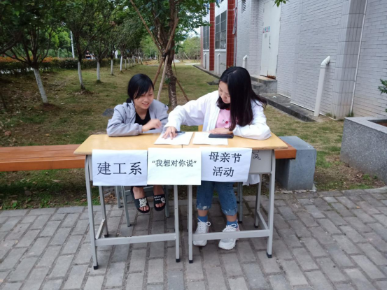 这些话,偶尔想起,又因害羞而藏于心中,不敢表达。越长大,越不敢对父母说我爱你,不是因为害怕,而是害羞。在这温馨五月,母亲节之际,建筑工程系女生部开展了“妈妈,我想对你说,我爱你”母亲节活动。唐代诗人曾有“慈母手中线,游子身上衣。”的诗句赞美游子对母亲的思念,并要“报得三春晖”感恩自己的母亲。此次活动起到了倡导广大儿女学会感恩,反思对母亲的感恩与回报,体会到了母亲的伟大与无私!