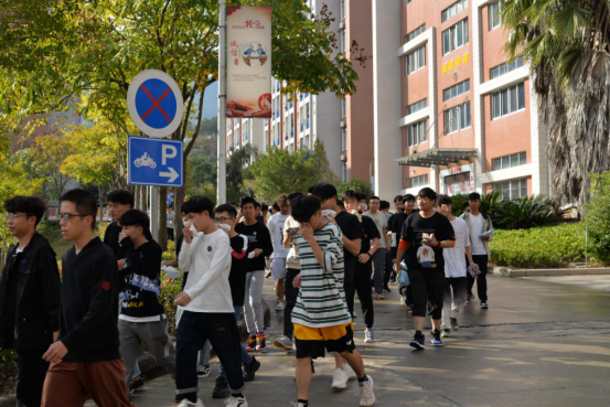 下午2:50,又一次哨声响起,辅导员陈晴、林燕琼立即组织学生有条不紊、安全、迅速地离开教室,学生们手捂口鼻、蹲身沿着既定的疏散线路向人工湖集合。王云彪书记、陆晓莉老师为本次演练做总结发言,要求同学提高安全用电意识,严禁使用大功率违禁电器、乱扔烟蒂等存在安全隐患行为,树立“生命至上、安全第一、预防为主”的意识。
