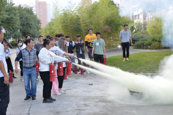 演练最后,安保处老师向学生们讲解了防火防灾注意事项以及消防器材使用方法,并现场示范如何使用灭火器。在认真听讲及观摩后,部分同学亲自体验现场灭火的过程,安保处老师当场纠正了同学们操作中存在的问题和不足之处。