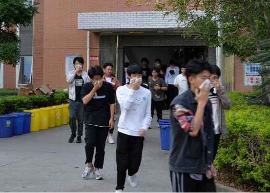 下午2:15,伴随一声响彻云霄的哨声响起,宿舍逃生演练正式拉开序幕,同学们以湿毛巾掩住口鼻,弯着腰,按照原定的逃生路线,从宿舍楼有序地撤离到安全地带。随后,辅导员陈晴、陈倩、林燕琼组织同学们到实训四教室里一起观看消防安全知识视频,使同学们充分认识到火灾危害性和消防安全的重要性。