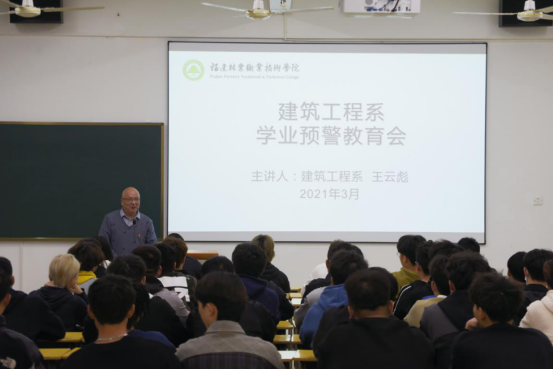 本网讯 为进一步加强建筑工程系学风建设,强化对学生学业管理,做好学生学业预警工作,积极引导学生端正学习态度,2021年3月22日20点20分,建筑工程系组织学业预警学生在实训四307教室召开学业预警教育暨学风建设教育大会,建筑工程系党总支书记王云彪、学生科科长兼团总支书记陆晓莉、辅导员吴文杰、林燕琼、陈晴等出席此次会议,本次会议由王云彪书记主持。