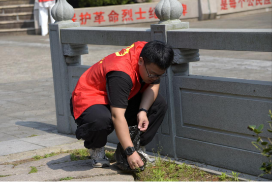 在庄严的烈士纪念碑前,志愿者们重温志愿誓词、敬献花篮,深切缅怀革命烈士的丰功佳绩,感恩他们用宝贵生命换来祖国今天的繁荣昌盛。接着,王云彪书记为志愿者们讲述革命先烈抛头颅洒热血的感人事迹,和志愿者们一起缅怀那段逝去的峥嵘岁月,并告诫同学们要好好珍惜来之不易的幸福生活和受教育机会,多学知识和技能,争取毕业后为祖国发展和社会建设多做贡献。活动最后,志愿者们通过扫落叶、拔除杂草、清理祭扫中遗留的各种物品等方式来保持纪念碑整洁的环境,以及向身边群众宣传文明祭祀,通过鲜花祭奠、植树祭奠、网上祭奠等方式缅怀哀思,减少对环境的污染,倡导健康、文明、绿色、平安的方式过清明节,以实际行动缅怀革命先烈。