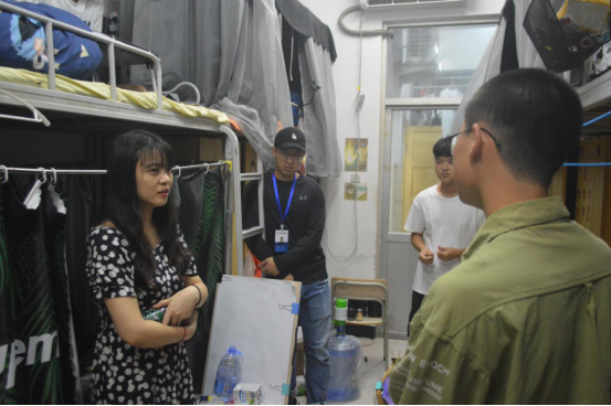 当晚19:30,系党总支书记王云彪、系学生科科长兼团总支书记陆晓莉及辅导员温全军、吴文杰、林燕琼、陈晴、陈倩带领系宿管部、女生部、保卫部、纪检部的干部分组走访系部所有学生宿舍,对学生宿舍的安全隐患进行排查及指导整改。