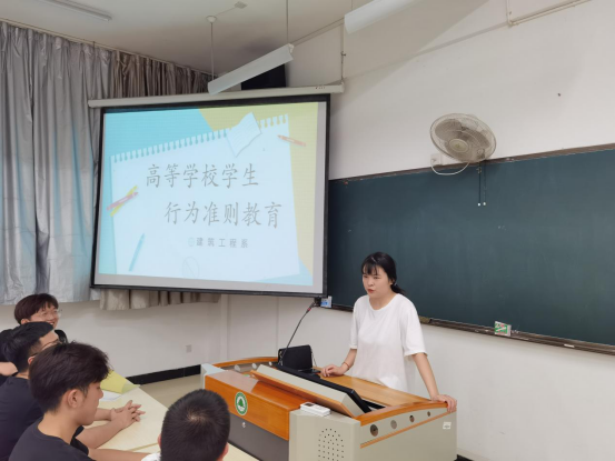 本网讯 为了全面贯彻落实党的《关于培育和践行社会主义核心价值观的意见》和《关于在各级各类学校推动培育和践行社会主义核心价值观长效机制建设的意见》,加强高职院校学生思想政治教育工作,切实增强建筑工程系学生的文明素养,促进学生日常行为习惯养成。2021年6月20,建筑工程系开展了主题为“高等学校学生行为准则”的班会。