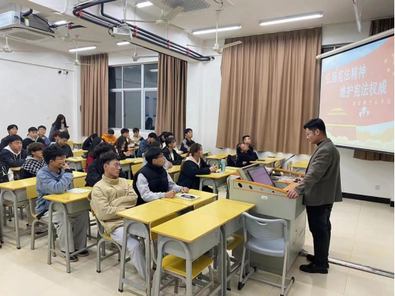 以提升同学们的宪法观念和法律素质为目的,主题班会通过线上线下同步开展,大一、大二辅导员们开展线下宪法学习主题班会,大三辅导员以线上形式开展宪法学习主题班会。辅导员们在本次主题班会中向学生详细阐述了宪法的含义,介绍了宪法的地位和重要性、宪法主要内容等基本常识。
