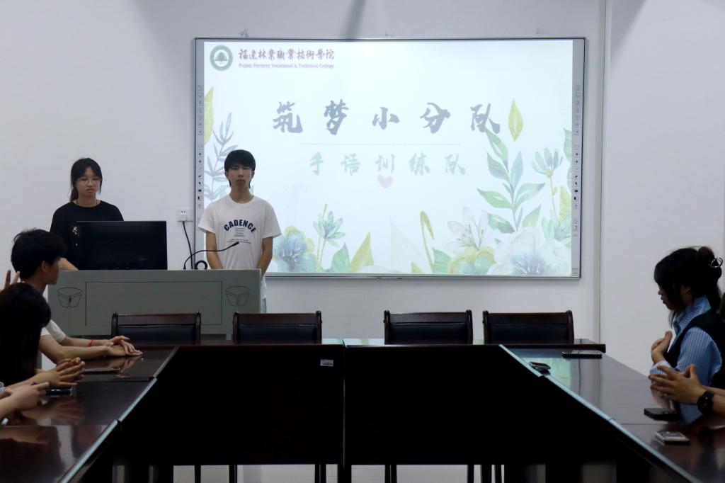 建筑工程系青年志愿者筑梦小分队成立于2013年6月,以“阳光助残”为宗旨,秉承着“奉献、友爱、互助、进步”的志愿者精神和“奉献爱、给予爱”的筑梦精神开展活动。2017年筑梦小分队与南平妇联、南平聋哑协会携手开展志愿服务,为此筑梦小分队特此成立了手语队,手语队从2022级的新生中纳新,挑选手语的爱好者,于每周四、周五进行集中学习训练,本学期筑梦小分队手语队重新启动。