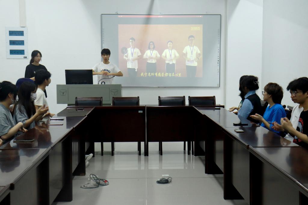 “你好”这个词语用手语要怎么表示呢?在手语里表达“你好”分为两部分:首先紧握拳头,伸出食指,向着对方,接着…”手语培训会上,筑梦小分队手语队的队员们全神贯注地学习手语知识。