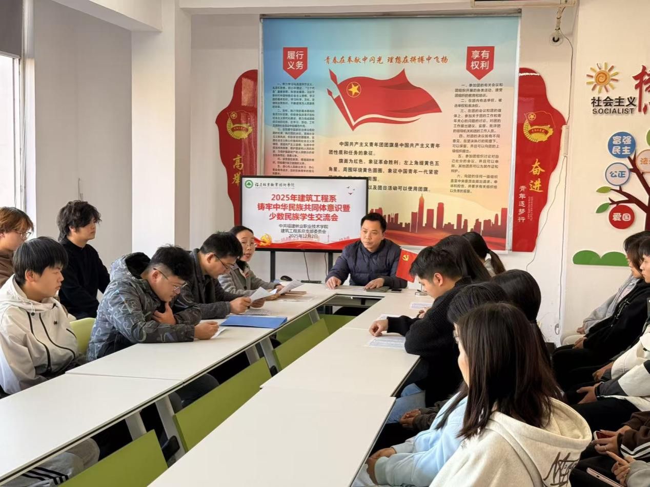 本网讯/为学习贯彻中央民族工作会议精神,扎实推进民族团结进步教育,2025年12月2日,建筑工程系于“一站式”学生社区立德空间召开铸牢中华民族共同体意识暨少数民族学生交流会,为来自不同民族、不同地域的学子搭建沟通桥梁。出席会议的有建筑工程系党总支书记魏长专、专职组织员叶新颖、学生科科长兼团总支书记刘克芹以及新生辅导员、各班级少数民族学生,会议由刘克芹老师主持。
