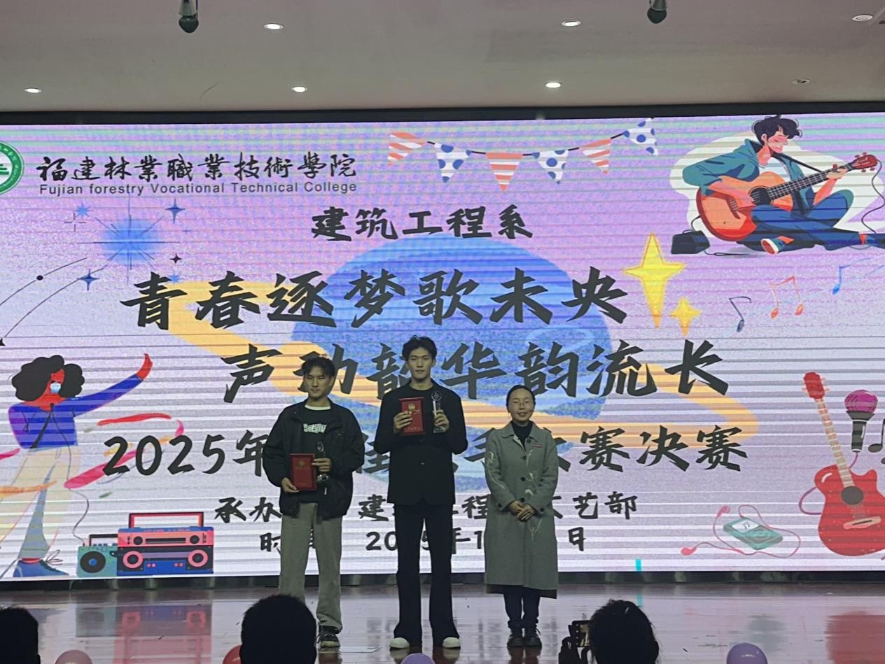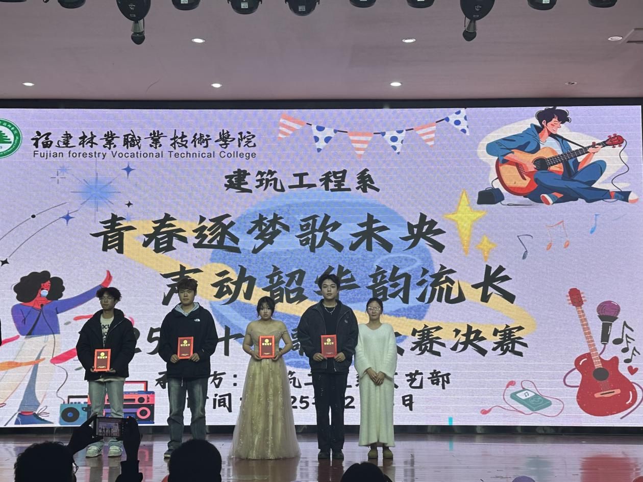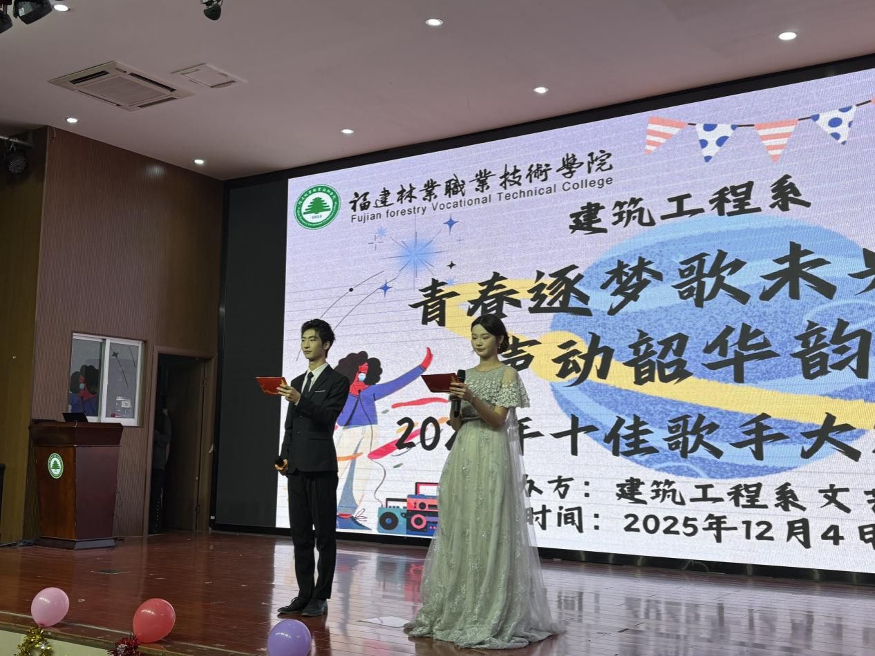 本网讯/2025年12月4日,建筑工程系“青春逐梦歌未央,声动韶华韵流长”十佳歌手大赛决赛在江南礼堂隆重举行。建筑工程系党总支书记魏长专、学生科科长兼团总支书记刘克芹及辅导员出席活动并担任评委。