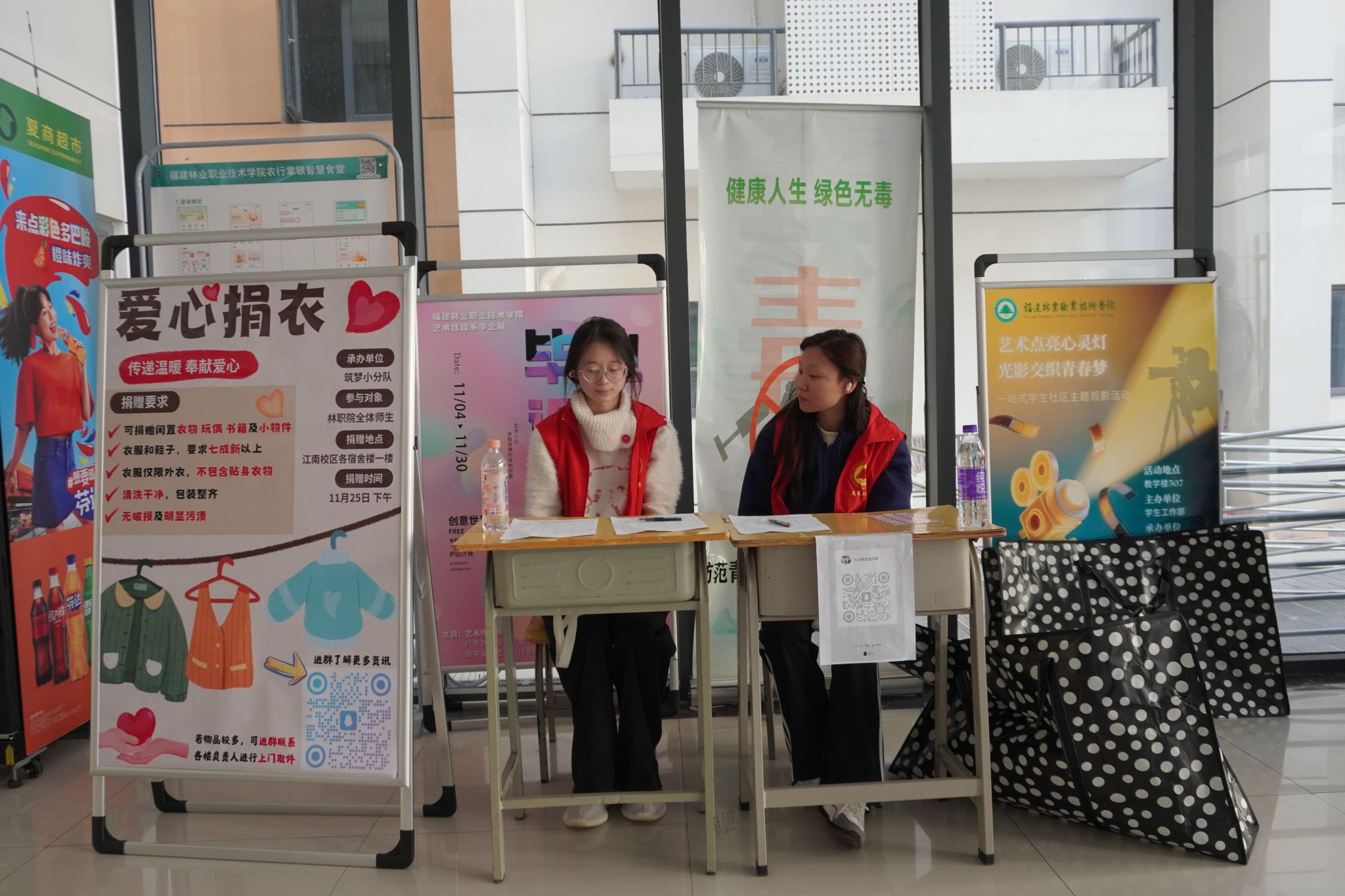 志愿服务的身影,是活动中最动人的风景。志愿者们始终坚守岗位、分工协作,以饱满的热情和耐心的态度接待每一位前来捐赠的师生。面对咨询,他们细致解答、耐心引导;协助填写捐赠信息时,他们认真严谨、一丝不苟;整理衣物时,他们逐件清点、分类打包,将一件件衣物叠得方方正正,封装成袋。一袋袋沉甸甸的衣物,不仅是爱心的汇聚,更是希望的延续,彰显着林职院学子助人为乐、甘于奉献的青春风采。