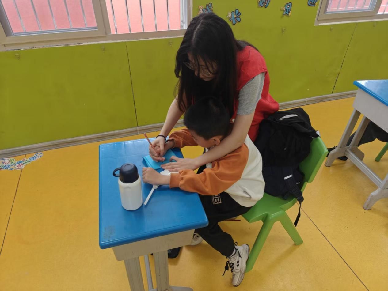 下午2点半,志愿授课准时开始。志愿者们化身“小老师”,迅速进入状态,用温柔的语气、亲切的笑容拉近与孩子们的距离,驱散了孩子们最初的腼腆与陌生。课堂上,志愿者们结合开智学校“体艺促康复”的办学理念,避开复杂的知识讲解,设计了趣味手工、简单绘画、儿歌传唱等互动环节,让孩子们在轻松愉悦的氛围中感受学习的乐趣。