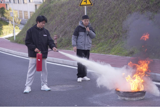 最后安保处李靖瑜老师向全体师生讲解并演示了灭火器的正确使用方法。讲解人员从特点入手,结合火灾案例、灭火器材使用、如何预防实验室火灾、发生火灾后如何逃生自救等消防安全知识进行讲解,并让现场的师生代表开展灭火器实战演练。