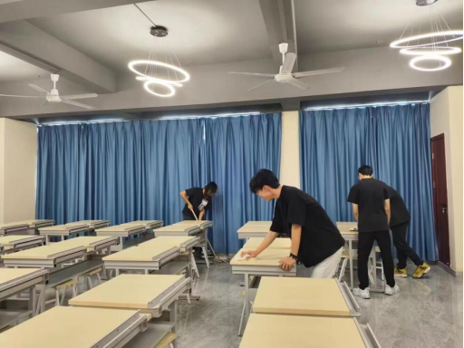 首先由志愿服务部工作人员给班级同学点名进行签到,随后经过有序分工,拿起抹布、拖把、扫把等清洁工具对提前划分好的劳动区域进行打扫。