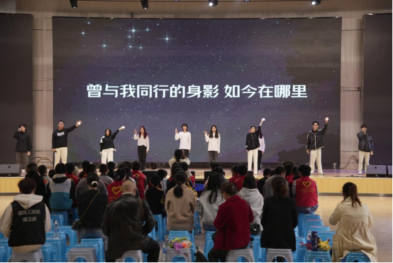 与此同时,青年志愿者们在校门口等待着小朋友们的到来。志愿者们一人带领一个小朋友,他们身上的号码牌与小朋友们身上的号码牌一一对应,不仅是爱与爱之间的联系,更是两个学校的紧密连接;随后各位志愿者们手牵手带领小朋友们共同前往江南体育馆观赏系部学生制作的建筑模型作品。