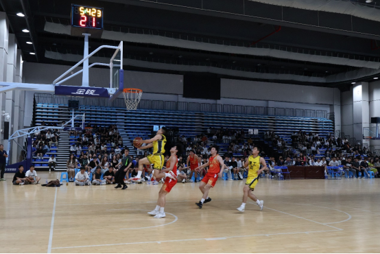 篮球在场上跳动,球员在场上奔跑,焦灼的比赛难分伯仲。双方队员各显身手,均使出浑身解数,他们动作娴熟、配合默契,一个个精彩的投篮、突破,比分交替上升。