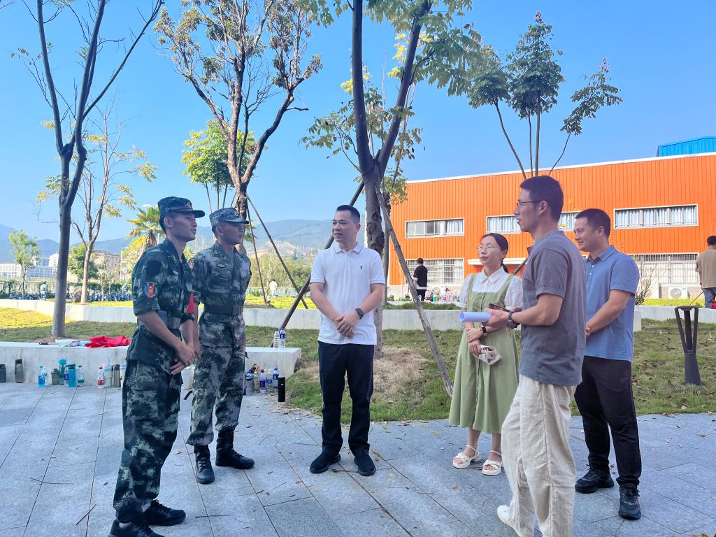 本网讯/2024年10月16日,建筑工程系党总支书记魏长专、建筑工程系主任彭忠伟、建筑工程系副主任张李平、建筑工程系学生科科长兼团总支书记刘克芹、建筑工程系教务科科长廖坤阳、建筑工程系党总支专职组织员叶新颖一行前往军训场地,亲切慰问正在参加军训的新生和教官。