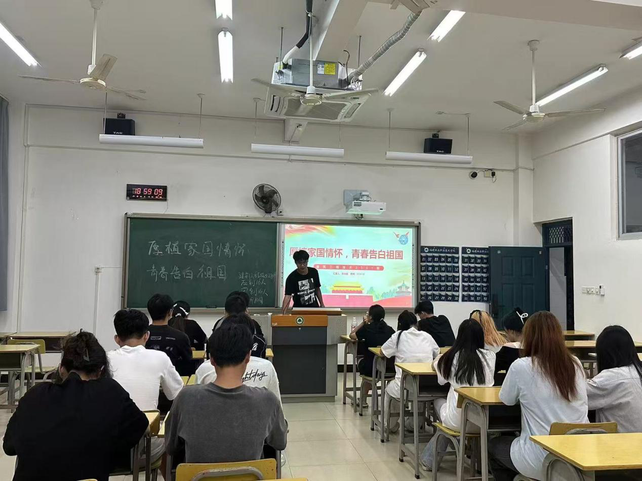 活动中,各班级团支部针对主题开始演讲,他们的话语如同涓涓细流,从不同角度、不同层面汇聚成对祖国的深情厚谊与美好祝愿。真挚的情感流露,让大家深切体会到家国情怀的深沉与博大。紧接着,同学们共同观看了展现祖国飞速发展的纪录片,从科技创新的日新月异到文化传承的生生不息,从城市的繁华景象到乡村的勃勃生机,每一帧画面都洋溢着祖国的强盛与活力,激发了他们内心的自豪与骄傲,更加坚定了同学们为祖国的繁荣富强贡献青春力量的信念。