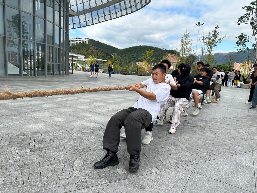 少年联臂登场,勇士陈力就列。各队伍斗志昂扬,随着比赛一声哨响,同学们铆足劲、拉紧绳,倾全力于一身,集合力于一绳,齐力奋战。比赛紧张激烈,双方时而稳持,时而拉锯,红绸带在两队之间来回拉扯,每一寸移动都牵动着现场观众的心弦。