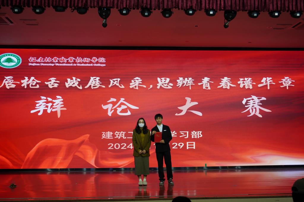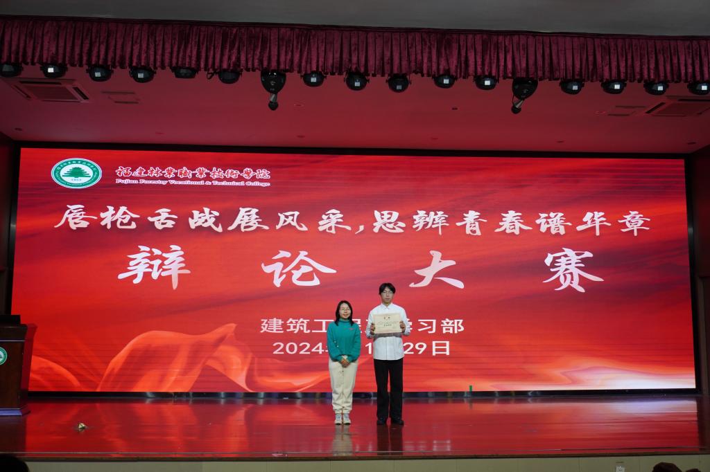 建筑工程技术2301班朱宇航同学凭借出色的个人表现荣获最佳辩手称号。
