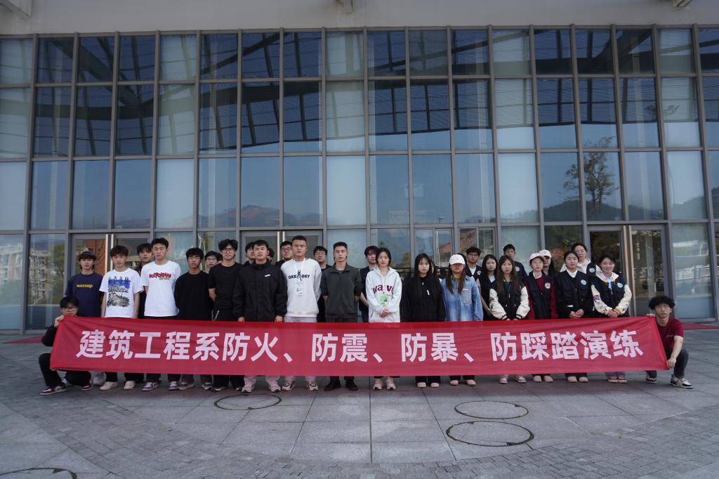 本网讯/校园安全,重中之重。为全力打造平安校园,营造安全有序的校园环境,进一步强化师生的消防安全意识,有效增强应对突发性事件的能力,3月11日,建筑工程系在江南体育馆组织开展“一站式”学生社区防火、防震、防暴、防踩踏安全演练活动。