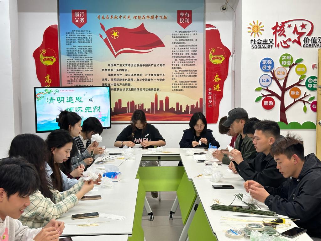 随后,全体老师与学生代表依次上前,向英雄烈士纪念碑敬献鲜花。本次祭奠所用花束均由建筑工程系师生党员及入党积极分子在“一站式”学生社区精心制作完成,每一朵鲜花都寄托着青年学子对革命先辈的崇高敬意,每一鞠躬都彰显着传承红色基因的坚定决心。